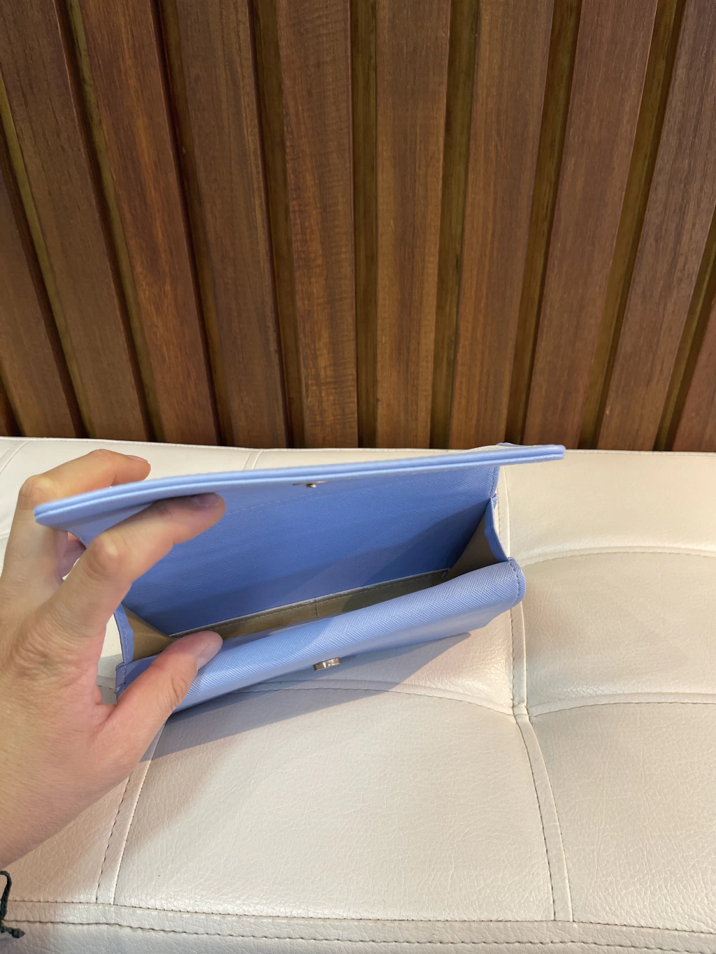 Billetera Coach blanca con azul bebé